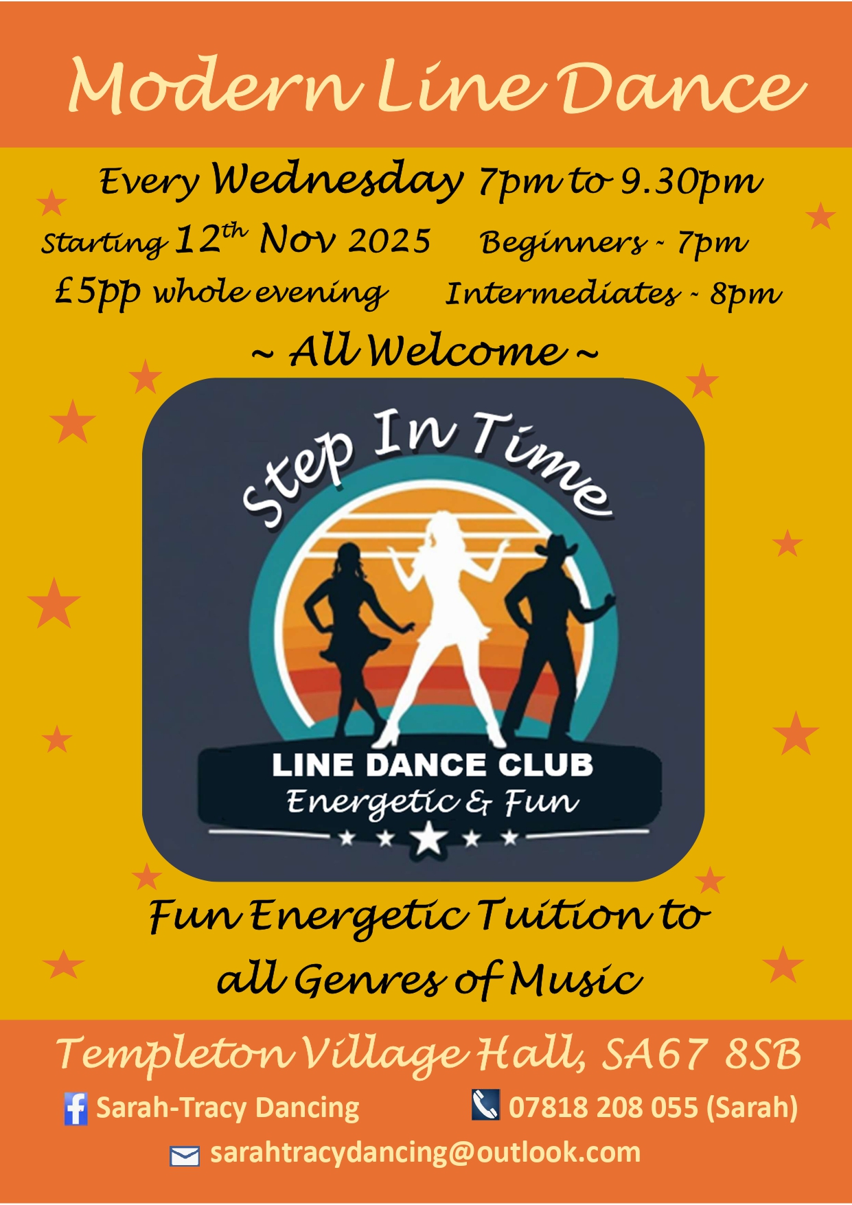 This page gives you posters and information that has been supplied by current and recent users of Templeton Community Hall. The posters and information is to tell you more about the different classes and events that go on, and also give you contact details for each group or class.